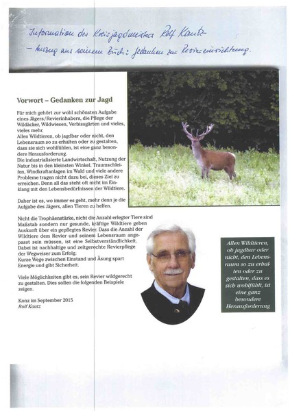 hier können Sie ein Auszug aus dem Buch des Kreisjagdmeisters Rolf Kautz herunterladen, in dem uns interessante und hilfreiche Beispiele, Methoden und Gedanken zur Reviereinrichtung und Revierverbesserung erwarten!
